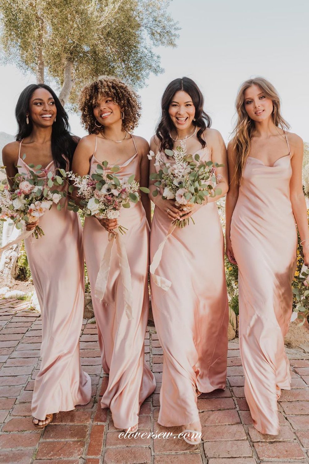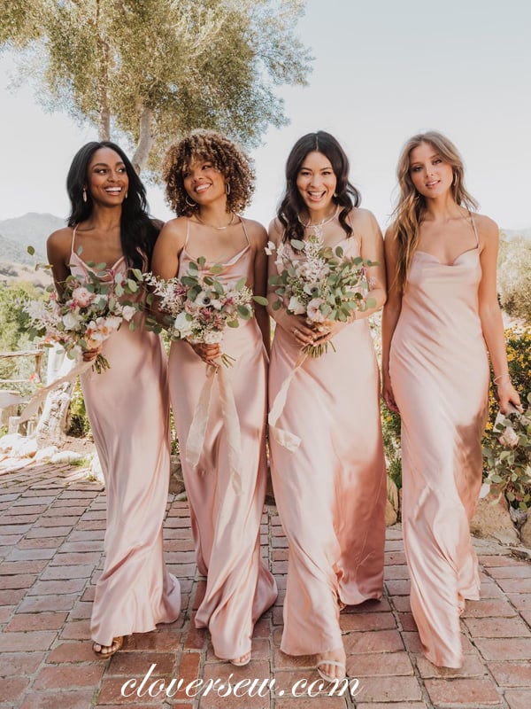 Spaghetti Strap Bridesmaid Dress,Column Long Bridesmaid Dresses,Blush Pink Elastic Satin Bridesmaid Dresses,CB0047