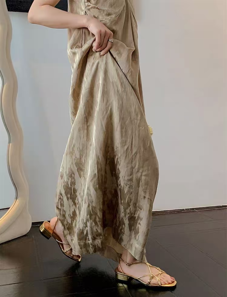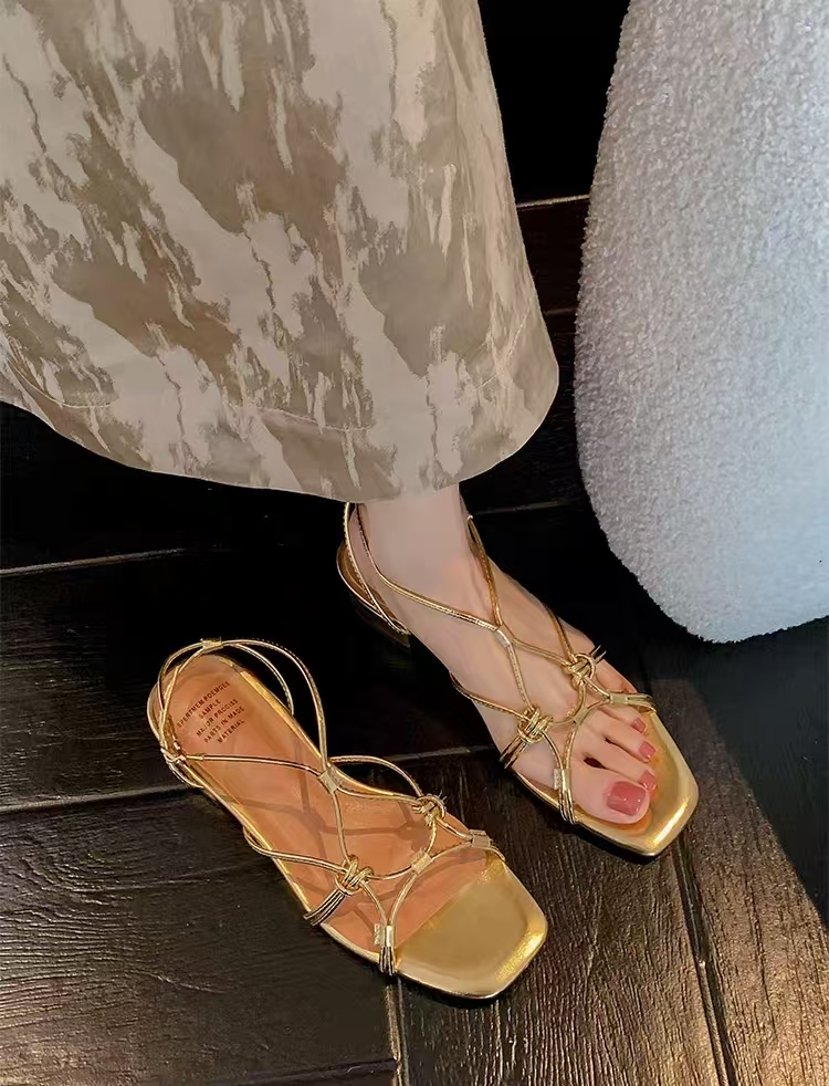 Gold Square Toe Flat Heel Braided Strap Sandals