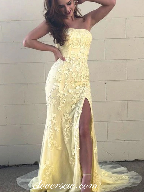 Lace Applique Prom Dresses,Yellow Prom Dresses,Fashion Dresses For Teens,CP0007