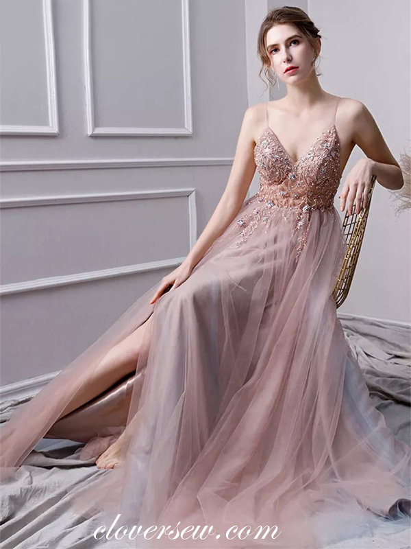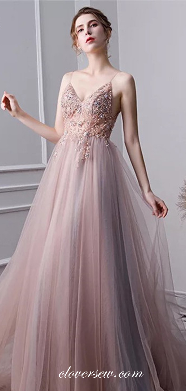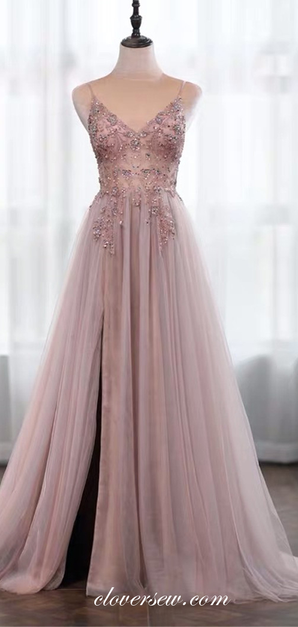 Handmade Beading Prom Dresses,Pink Tulle Prom Dresses,A-line Prom Dresses,CP0017