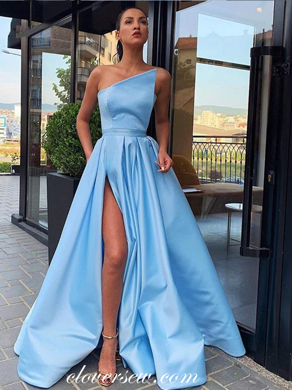 Blue Satin Prom Dresses,Strapless Prom Dresses,A-line Prom Dresses,CP0018