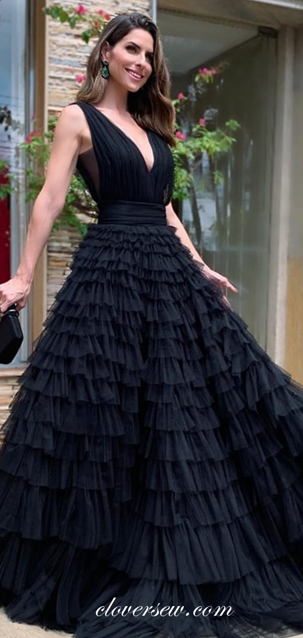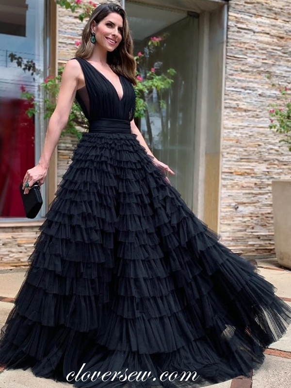 Black Prom Dresses,Ruffles Tulle Dresses,A-line Sleeveless Prom Dresses,CP0024