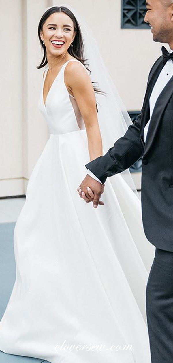 Satin Wedding Dresses,V-neck Wedding Dresses,A-line Wedding Dresses,CW0010