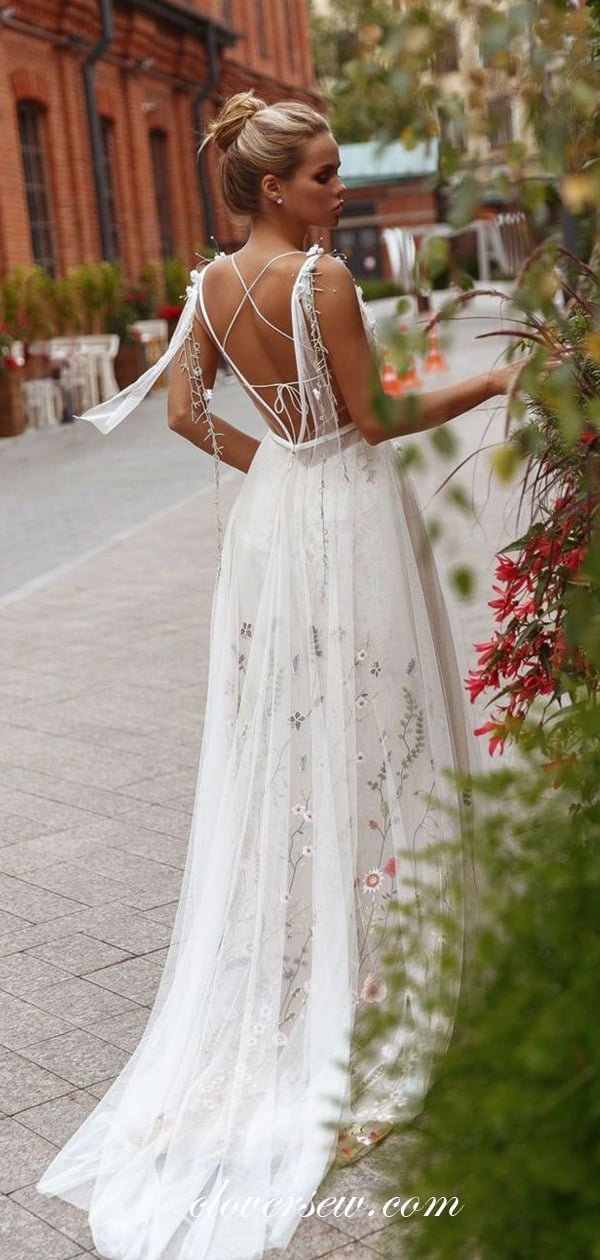 Embroidery Tulle Wedding Dresses,3D Applique Wedding Dresses,Country Wedding Dresses,CW0012