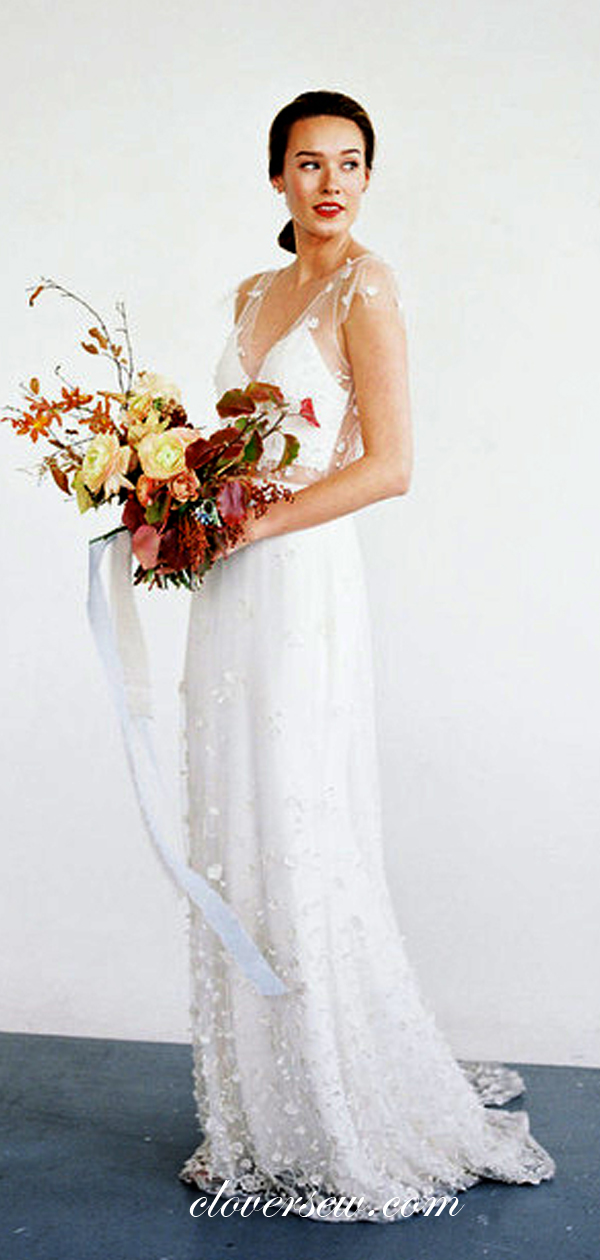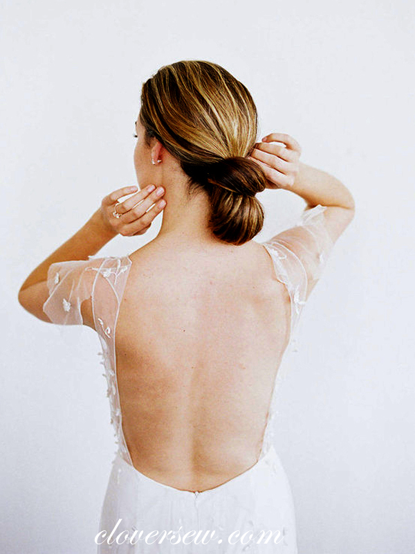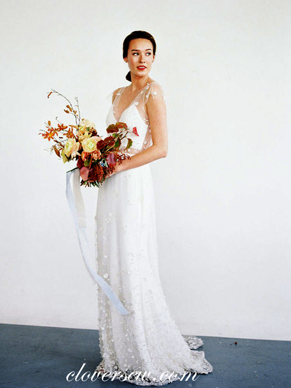 Lace Wedding Dresses,Backless Wedding Dresses,Cap Sleeves Wedding Dresses,Beach Wedding Dresses,CW0026