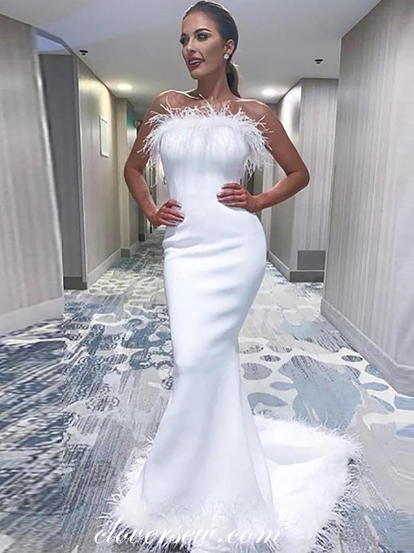 Satin With Feather Wedding Dresses,Strapless Wedding Dresses,Mermaid Wedding Dresses,CW0029