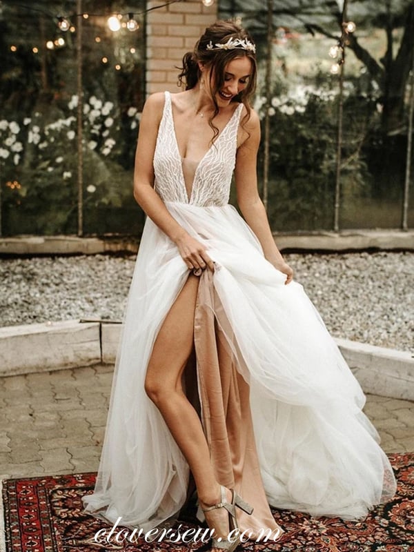 Nude Wedding Dresses,Lace Tulle Wedding Dresses,Country Wedding Dresses,CW0040