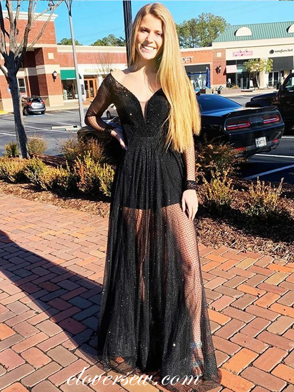 Shiny Black Prom Dresses,Long Sleeves Prom Dresses, Fashion Formal Dresses,CP0060