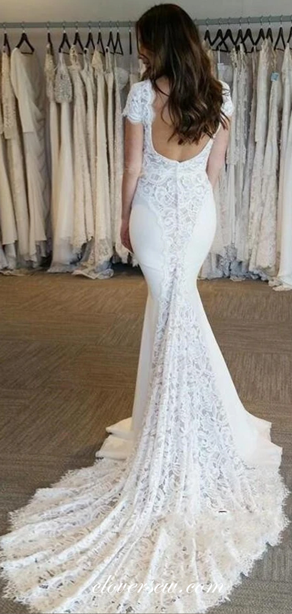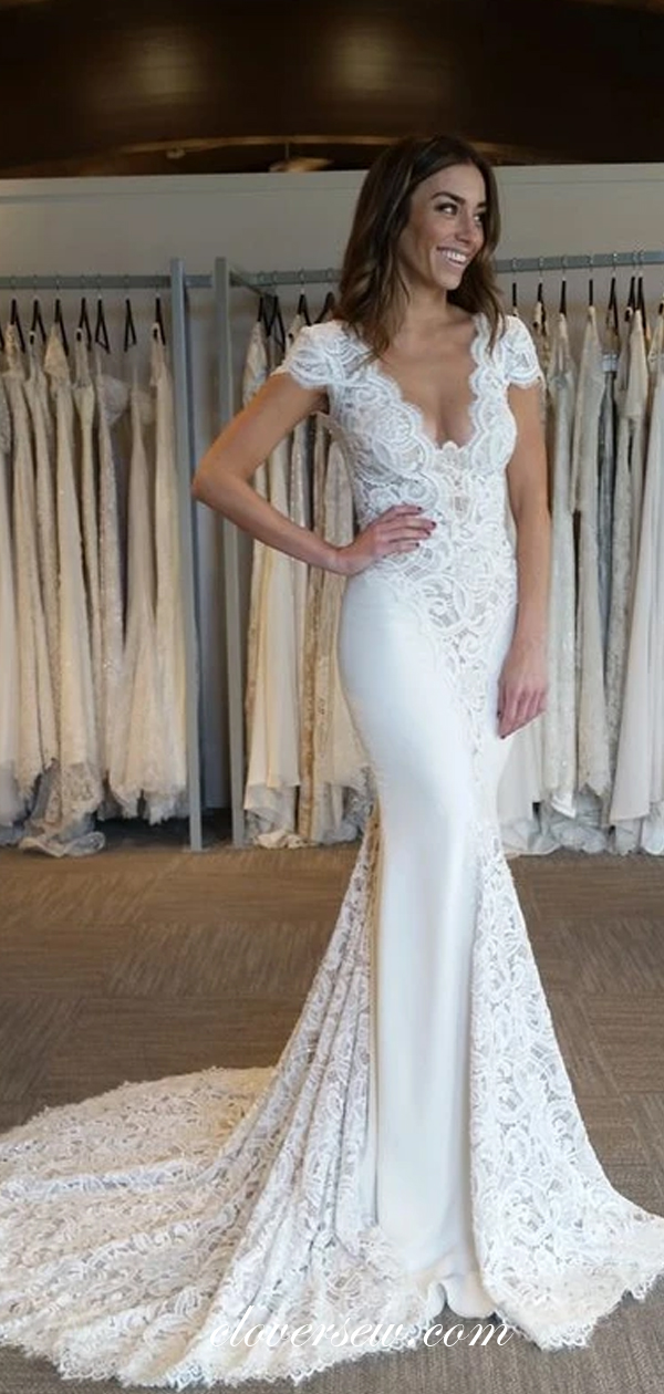 Lace Wedding Dresses,Cap Sleeves Wedding Dresses,Sexy Mermaid Wedding Dresses,CW0049