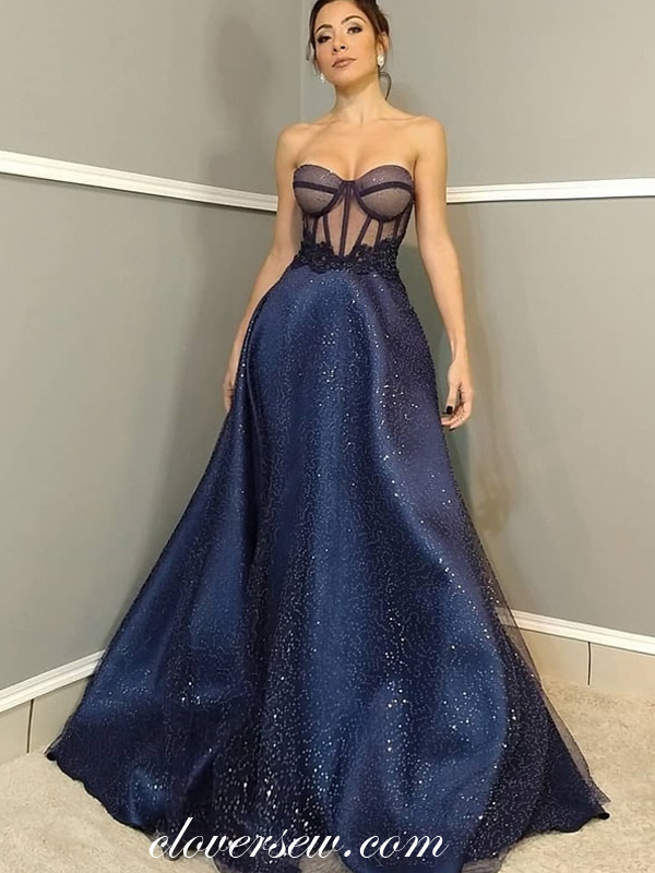 Shiny Prom Dresses,Navy Prom Dresses, Strapless Prom Dresses,CP0063