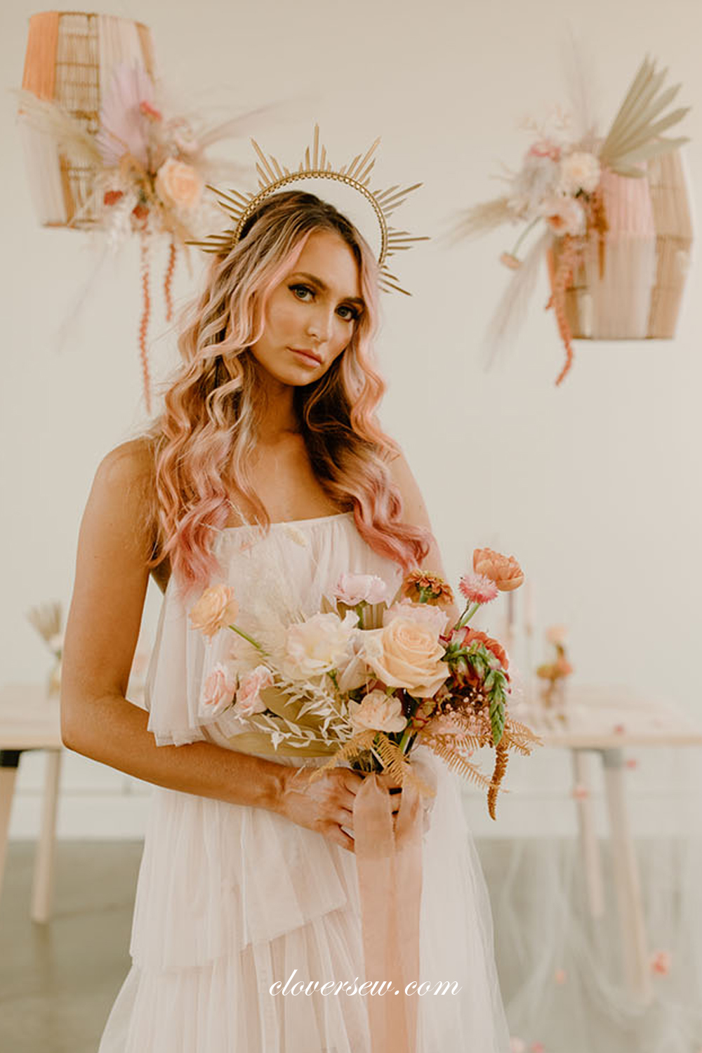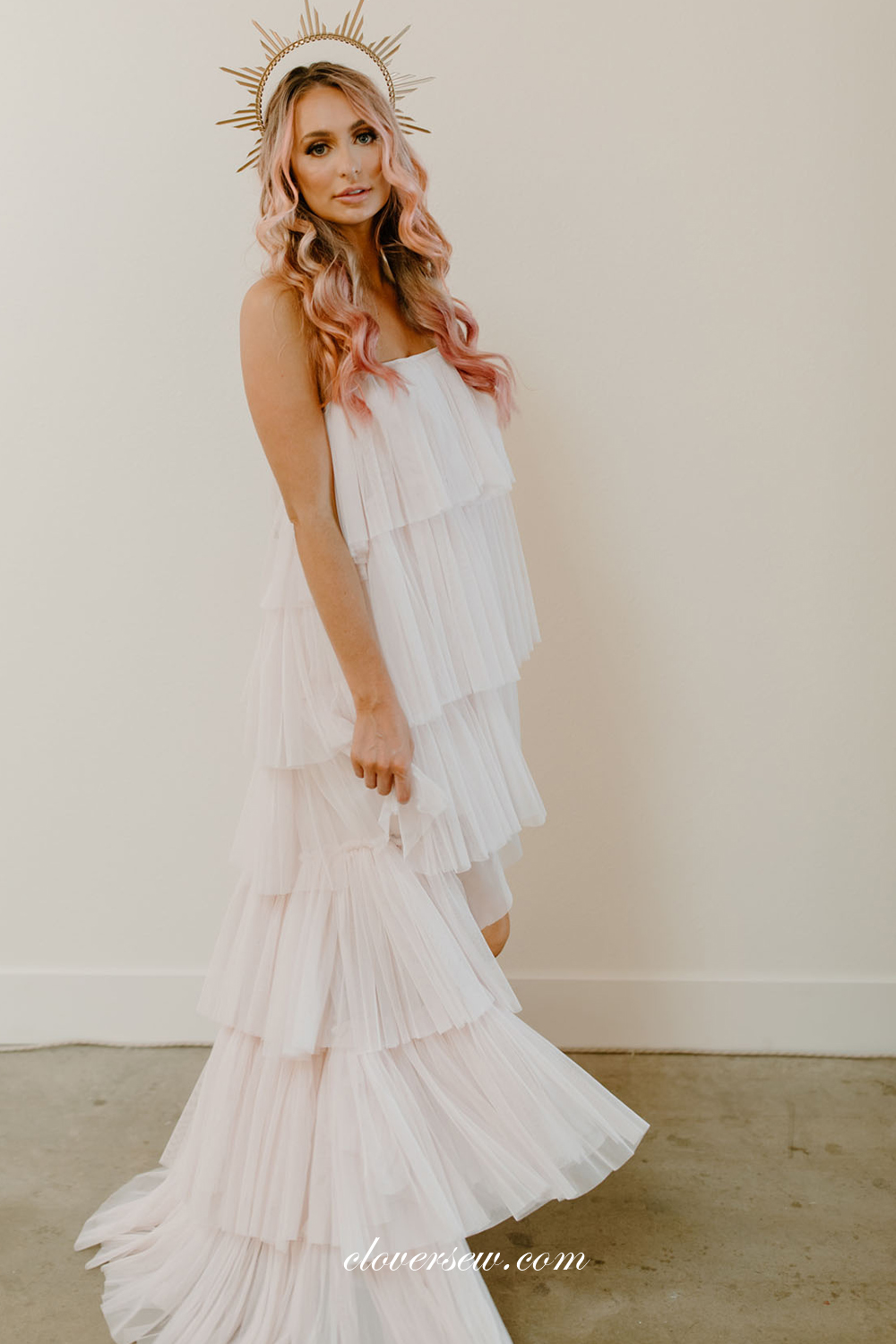 Blush Pink Wedding Dresses,Tiered Wedding Dresses,High Low Wedding Dresses,CW0063
