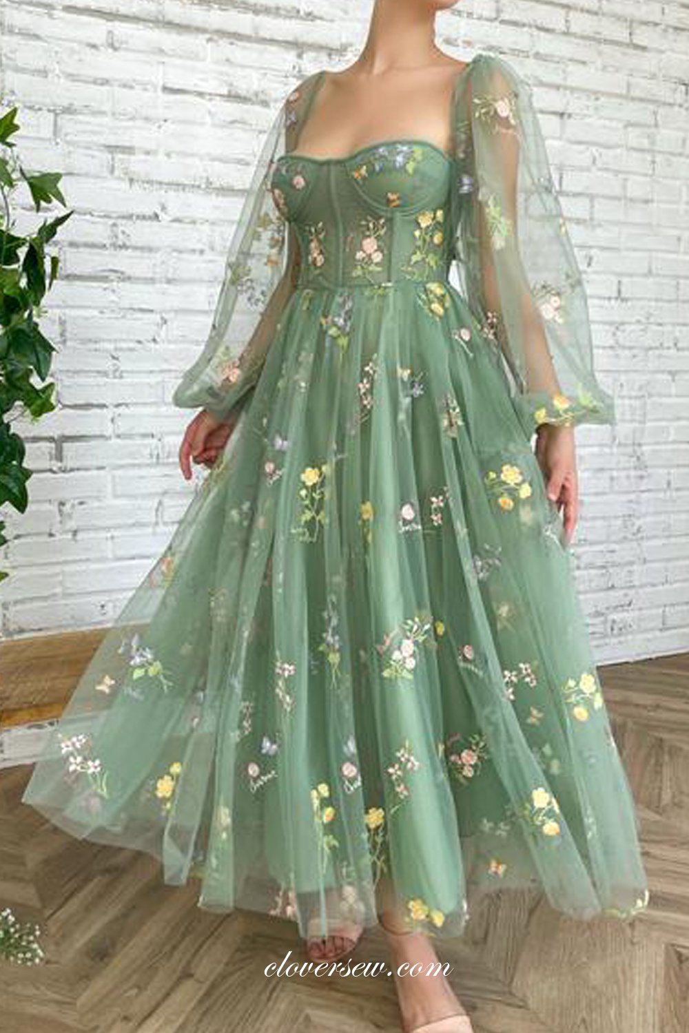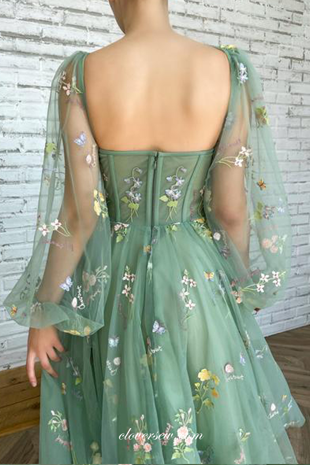Floral Embroidery Prom Dresses,French Dresses,Long Sleeves Dresses,CP0083