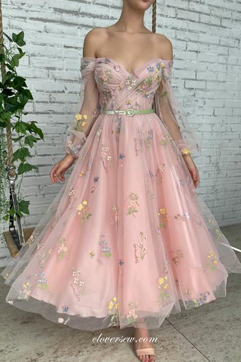 Floral Embroidery Prom Dresses,Pink French Dresses,Off The Shoulder Party Dresses,CP0085