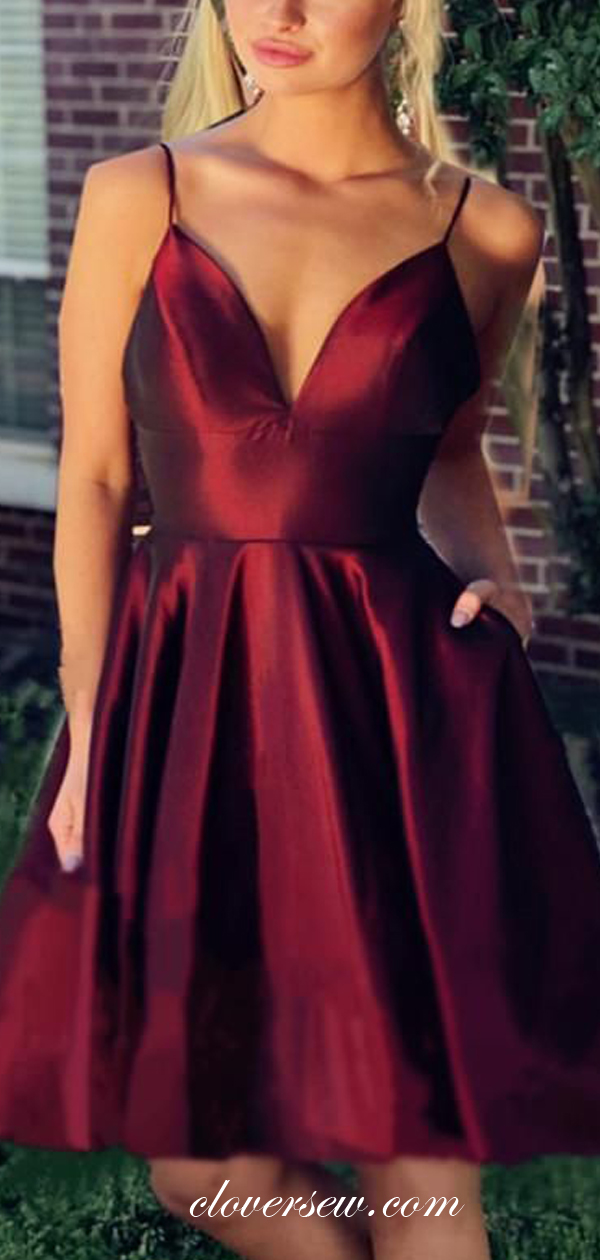 Burgundy Satin Short Prom Dresses,Short Homecoming Dresses,Simple Party Dresses for Teens,CP0125