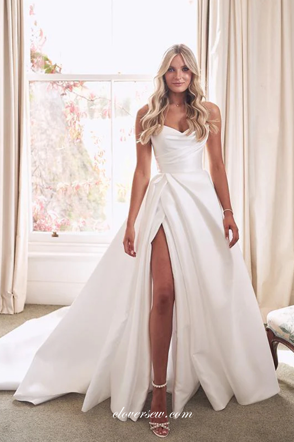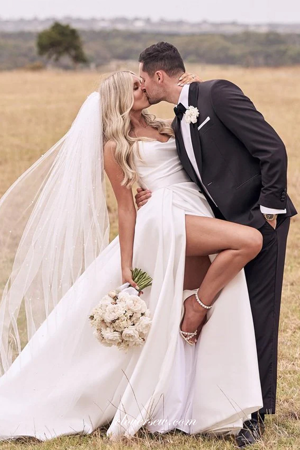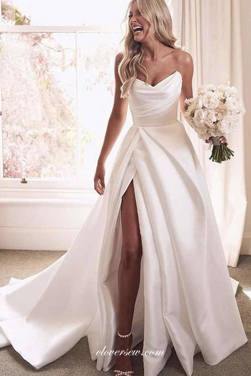 Off White Satin Wedding Dresses,Strapless Wedding Dresses,Country Wedding Dresses,CW0068