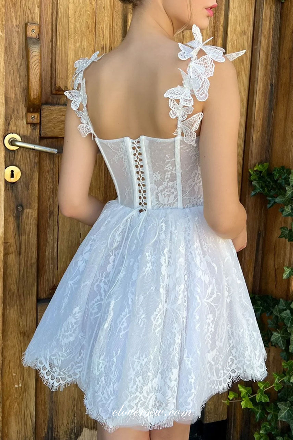 White Lace Cocktail Dresses,Short Simple Wedding Dresses ,Sweet Homecoming Dresses,CP0140