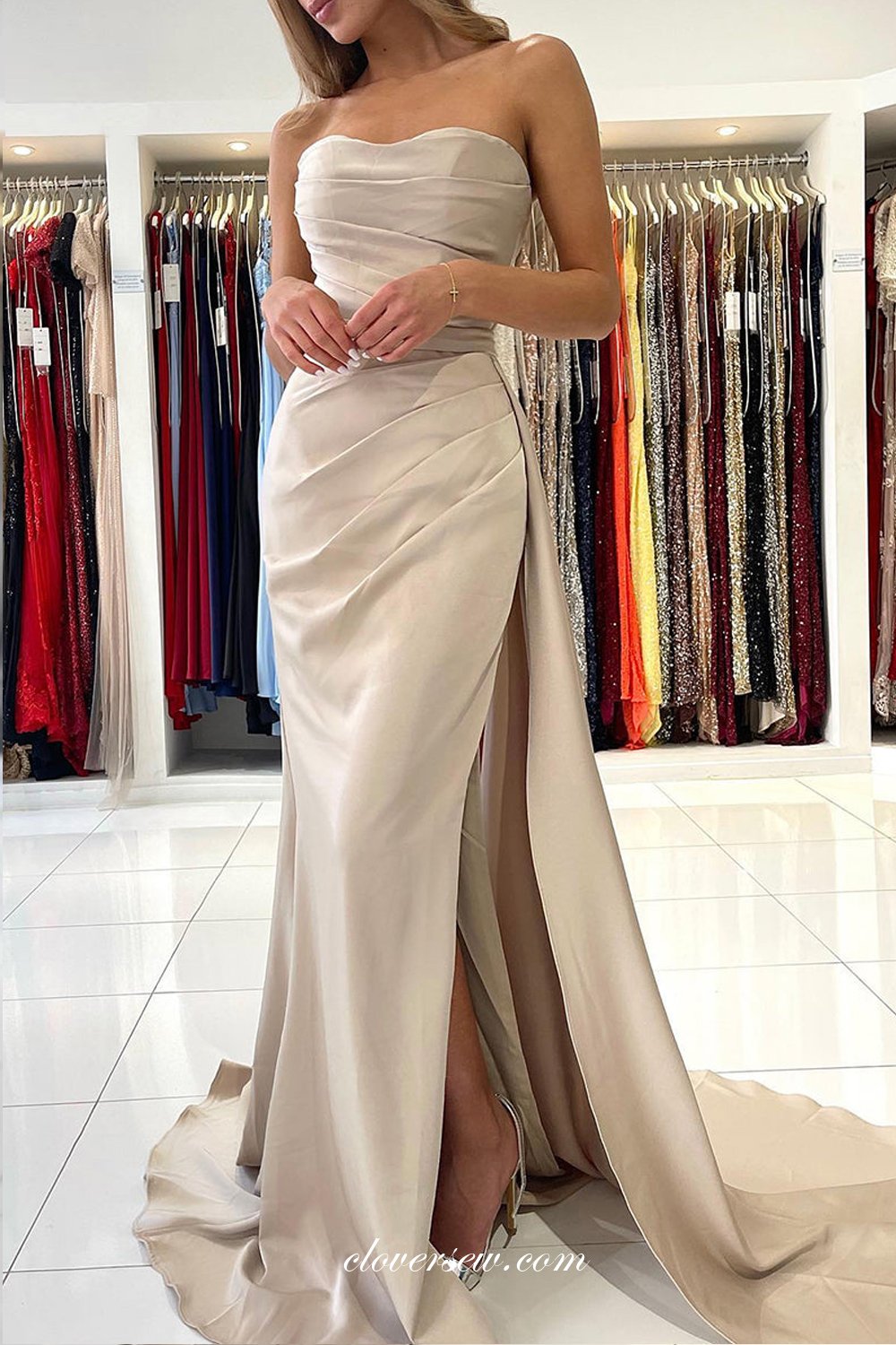 Pleating Satin Prom Dresses,Strapless Mermaid Formal Dresses , Elegant Evening Dresses,CP0146