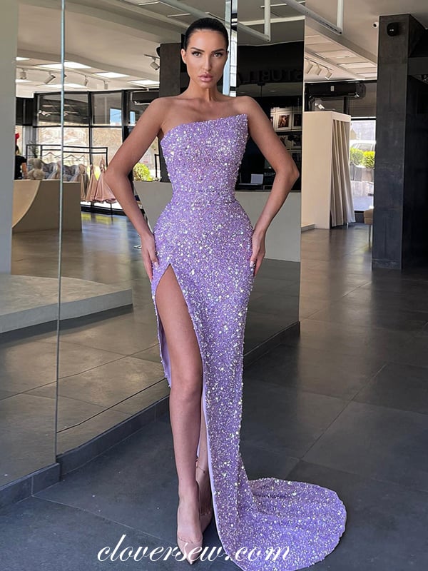 Lilac Sequined Tulle Prom Dresses,Stapless Mermaid Prom Dresses ,Sparkly Prom Dresses,CP0151