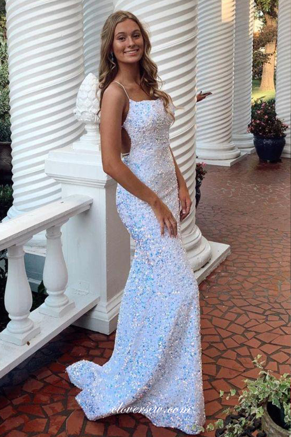 White Sequiin Prom Dresses, Fashion Senior Prom Dresses,Sparkly Mermaid Prom Dresses,CP0159