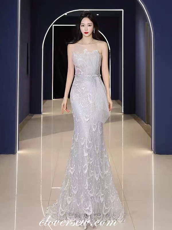 Silver Glitter Lace Prom Dresses,Strapless Mermaid Formal Dresses, Sparkly Evening Dresses,CP0169
