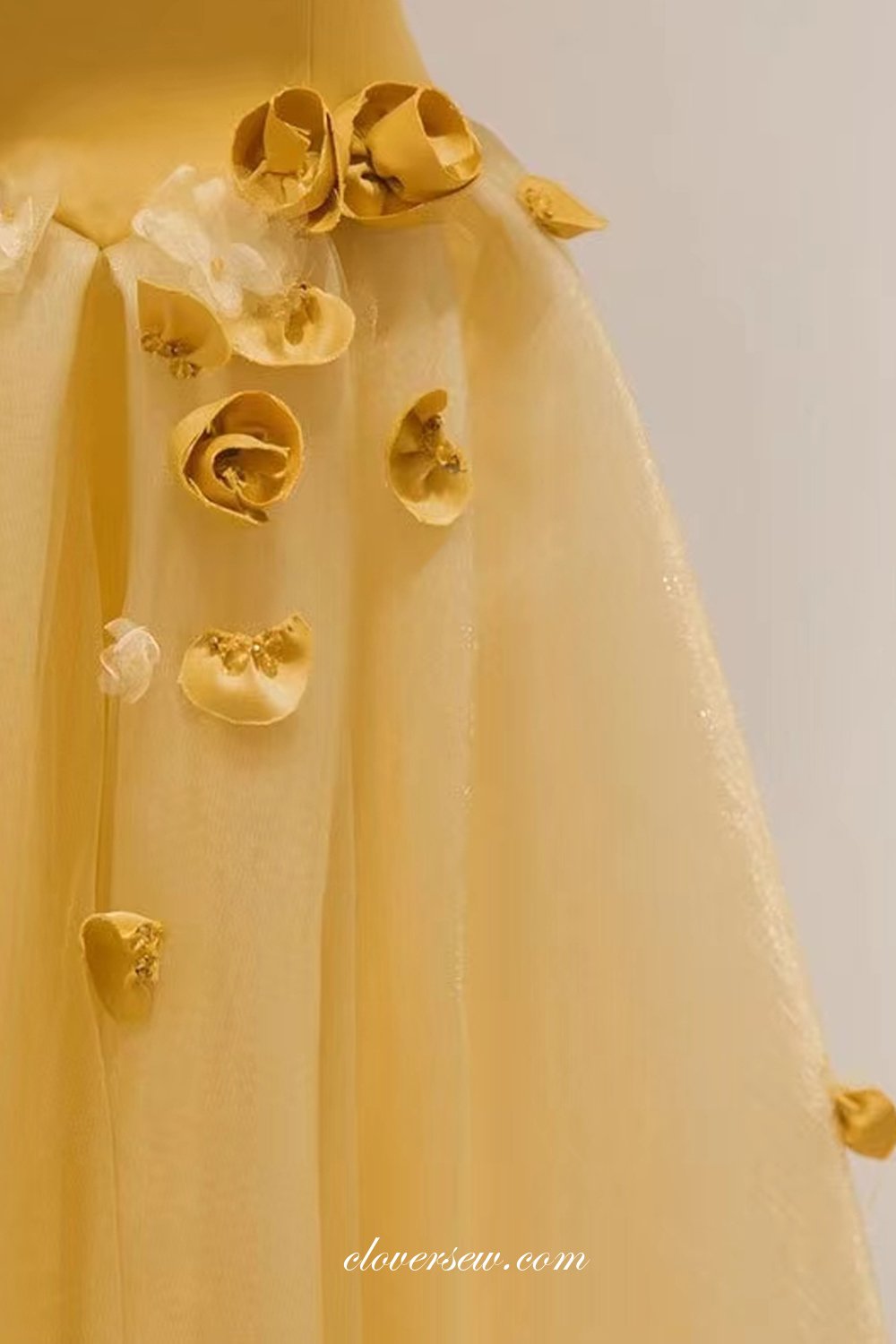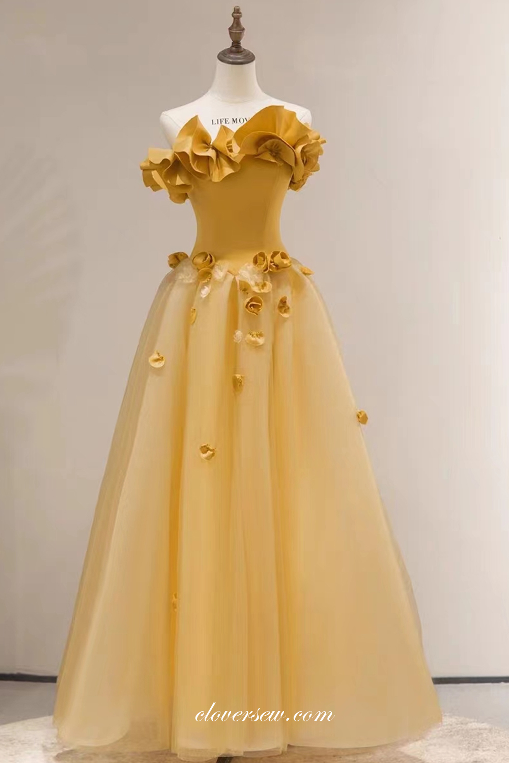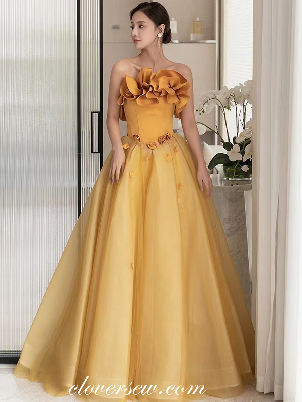 Yellow Strapless Prom Dresses,Handmade Flowers A-line Prom Dresses, Elegant Formal Dresses,CP0172