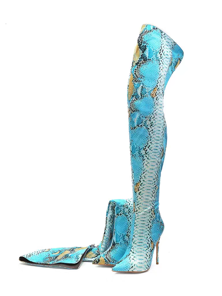 Python Pattern Sexy Model Boots Stiletto Heel Over Knee Boots 47 Large Size Custom Boots
