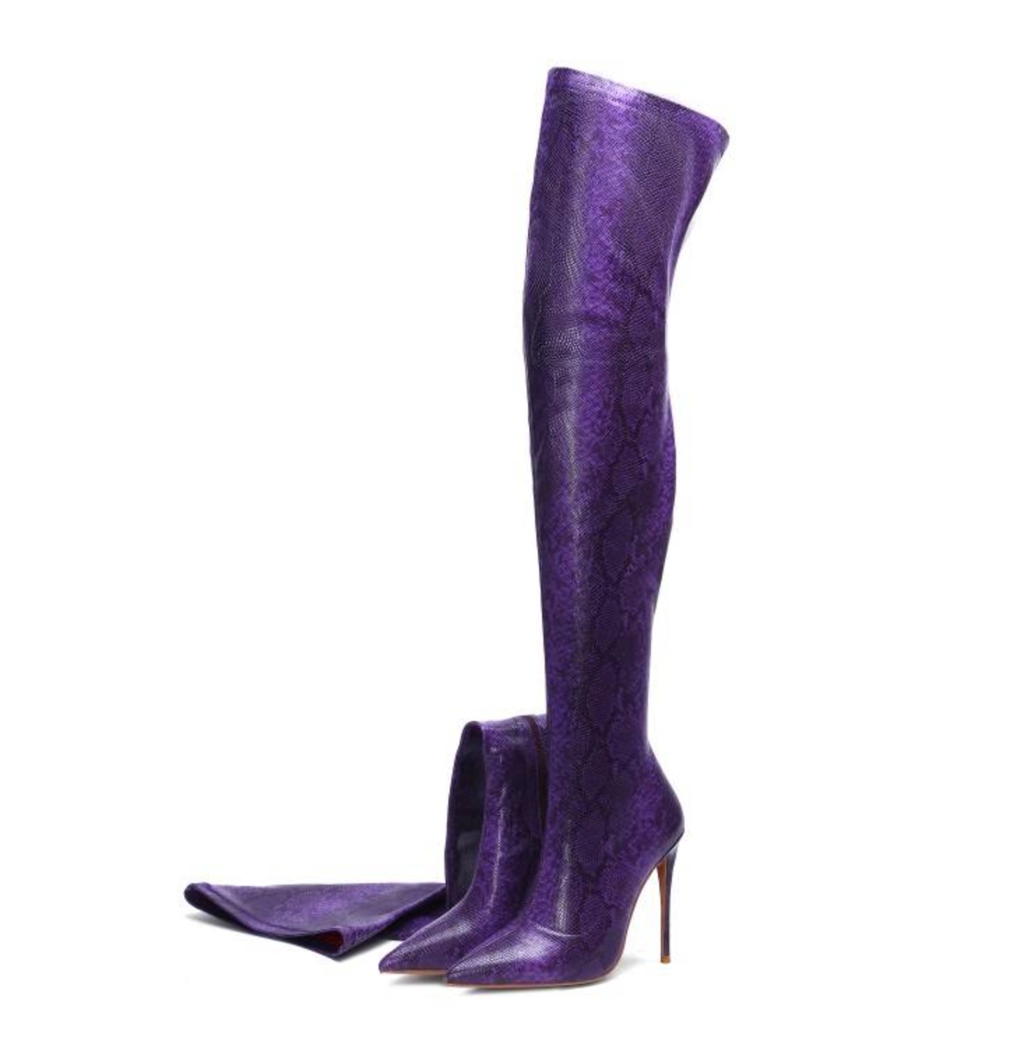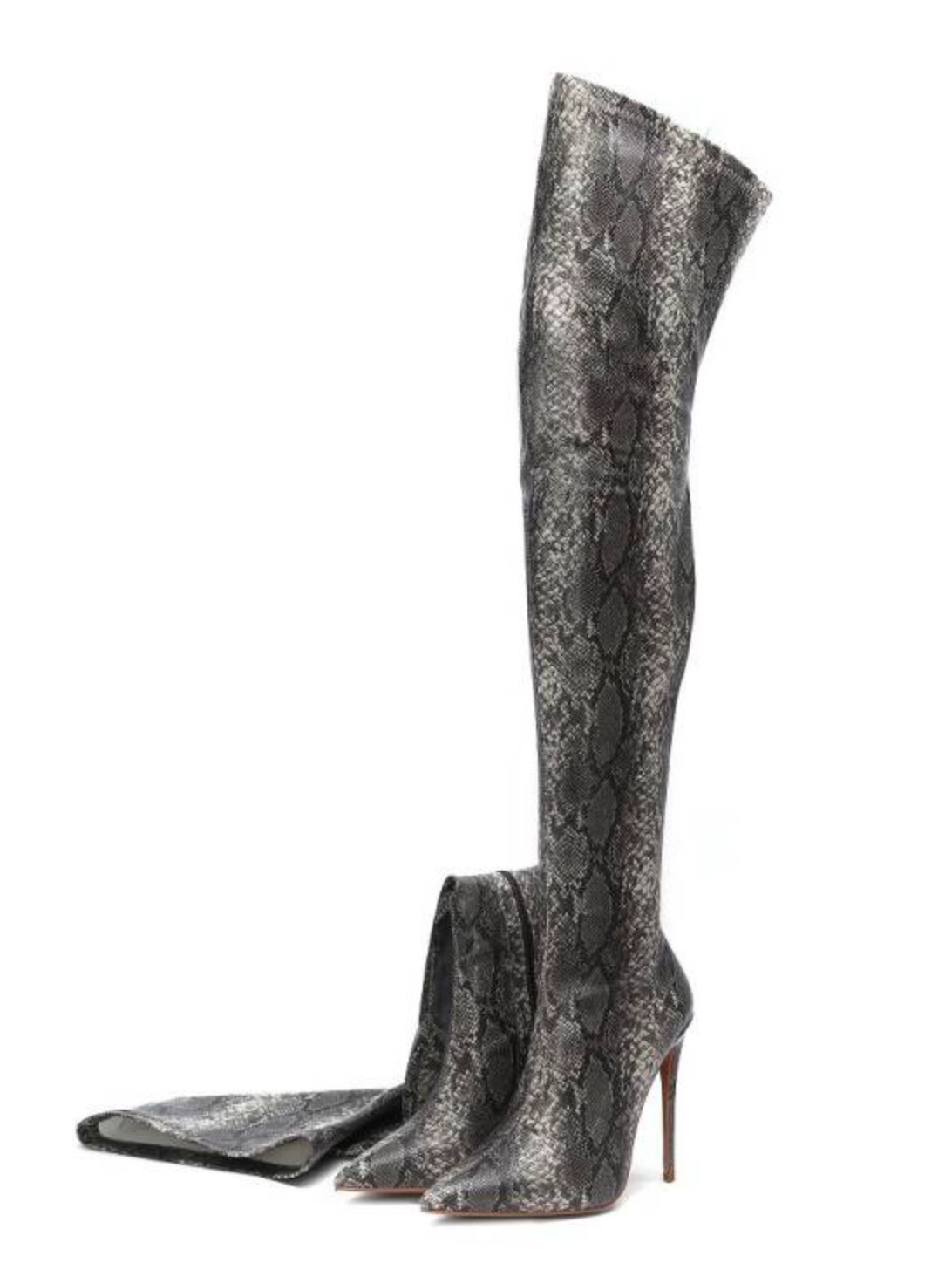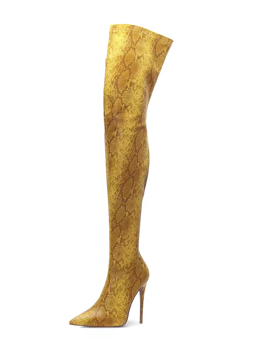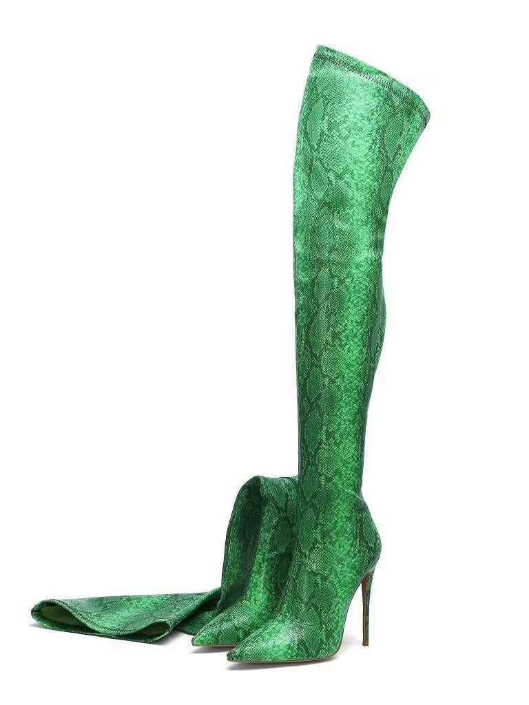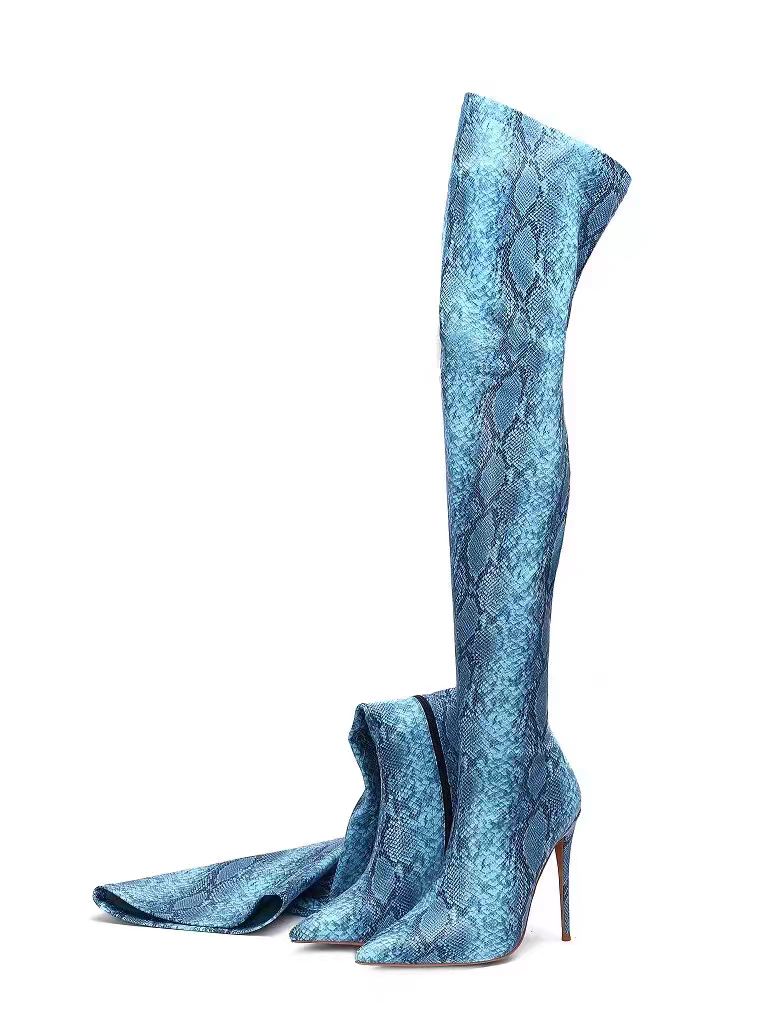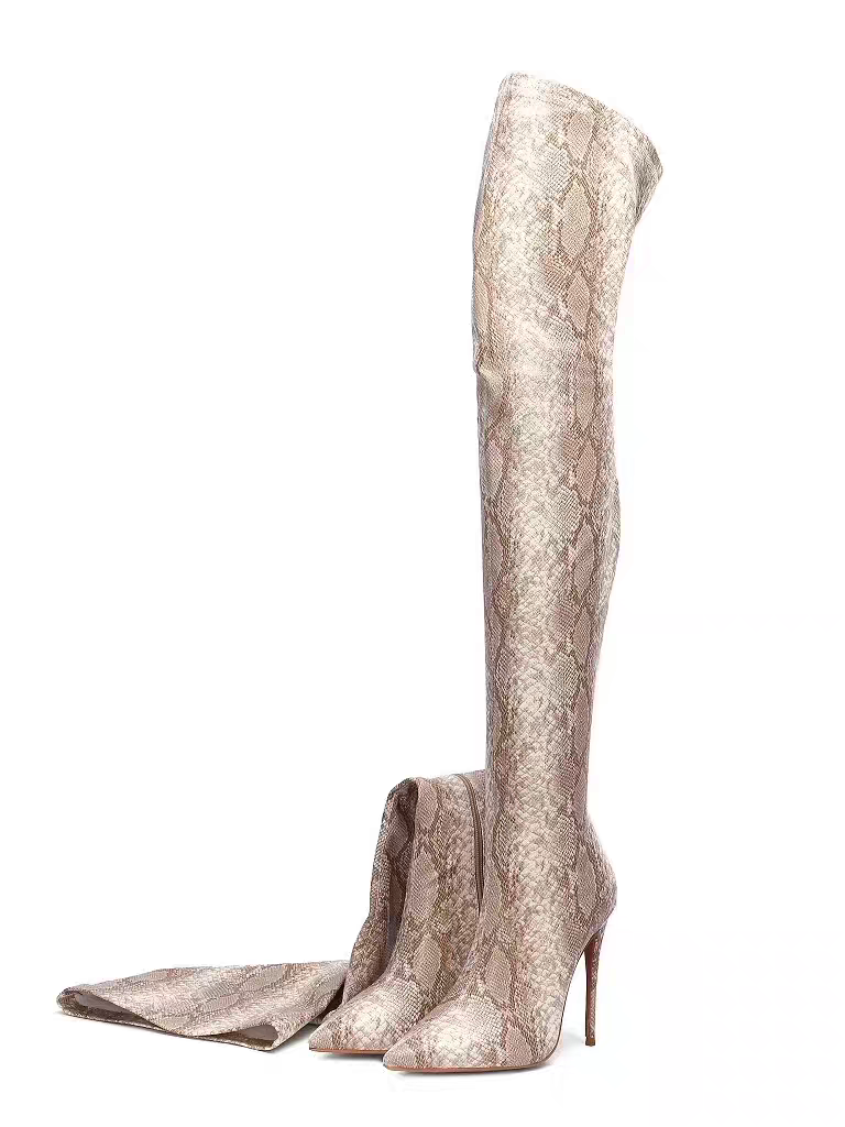 Pointed Python Pattern Stiletto Heel Thigh Boots Performance Boots 47 Large Size Custom Boots